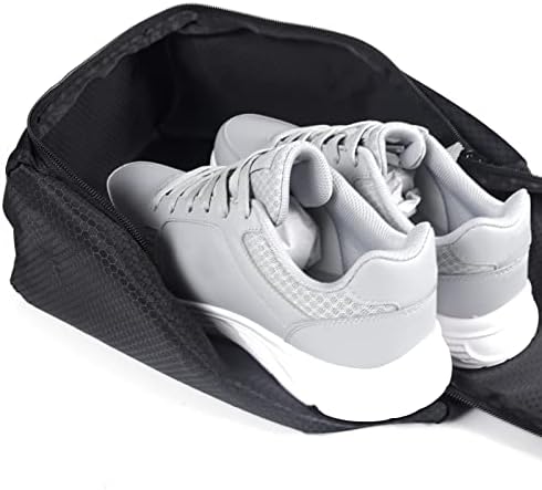 Crafted with high-quality materials, our shoe storage bag offers optimal durability to withstand the rigors of frequent use. The spacious interior provides ample room to store one pair of adult-sized shoes, ensuring they remain protected and securely stowed away during your travels. Its sleek black design exudes both style and sophistication, making it a fashionable addition to any luggage or gym bag.